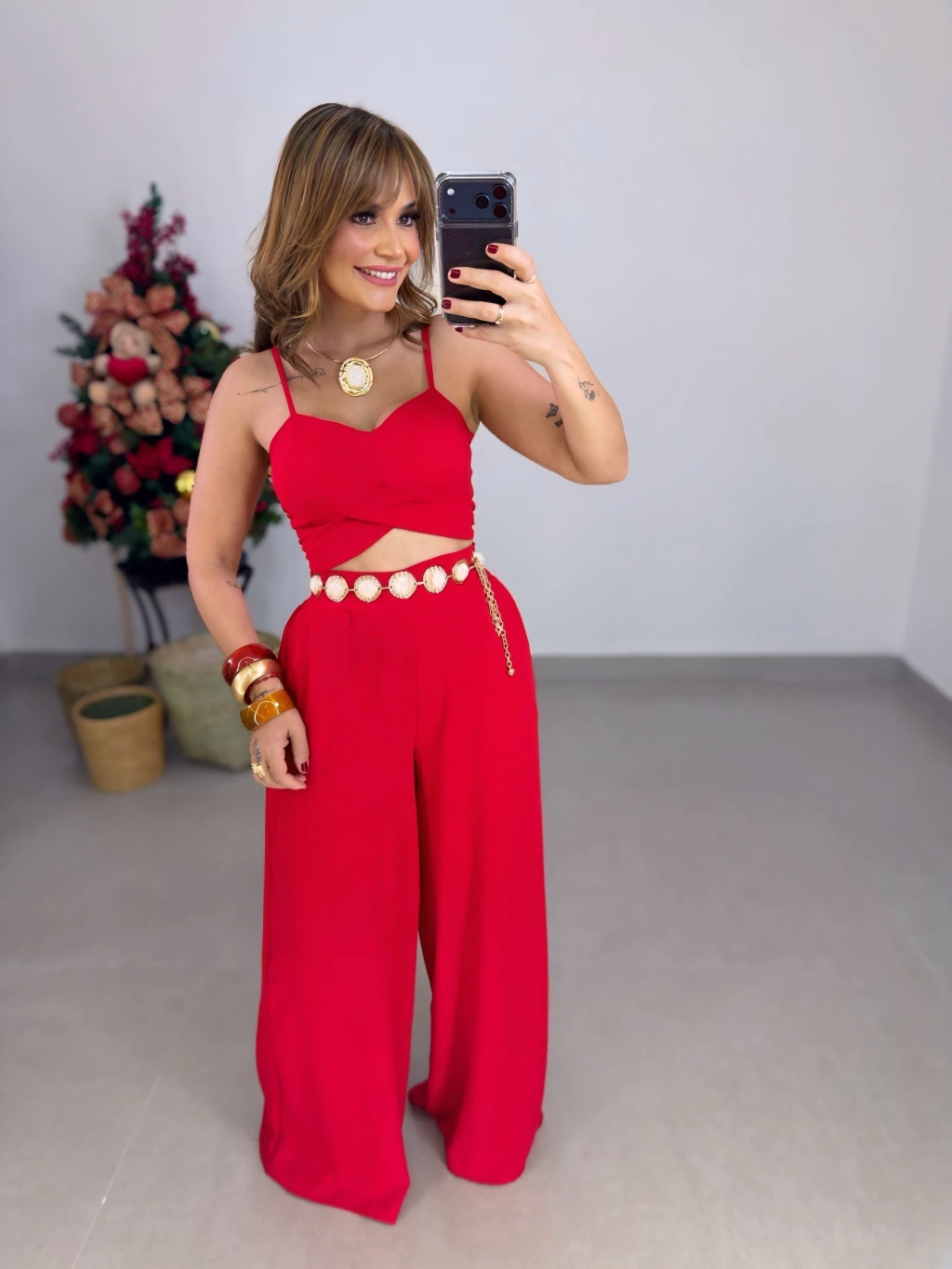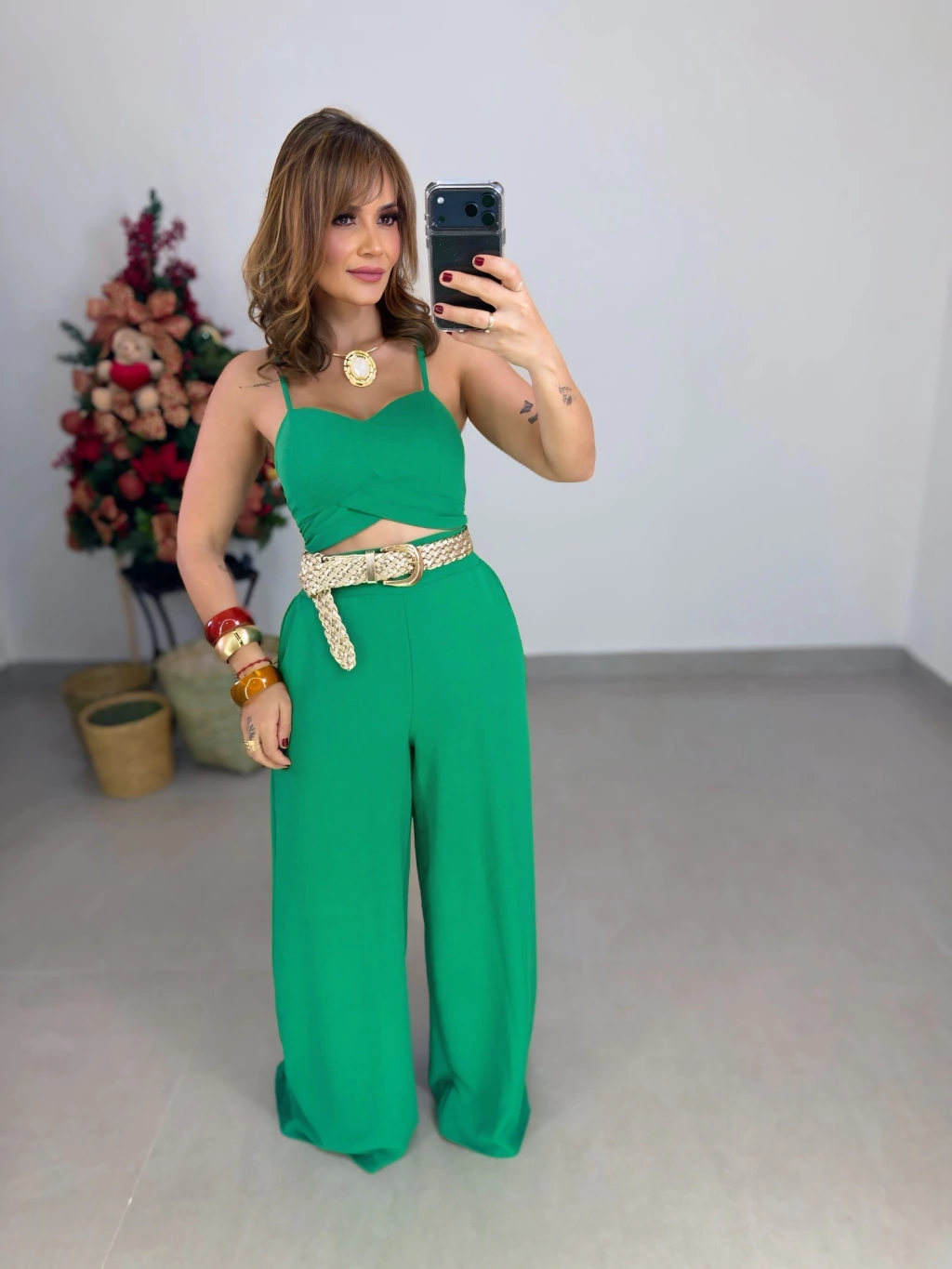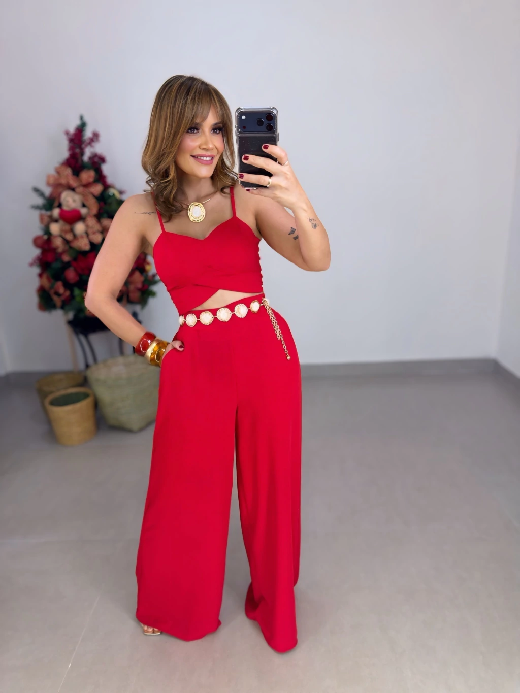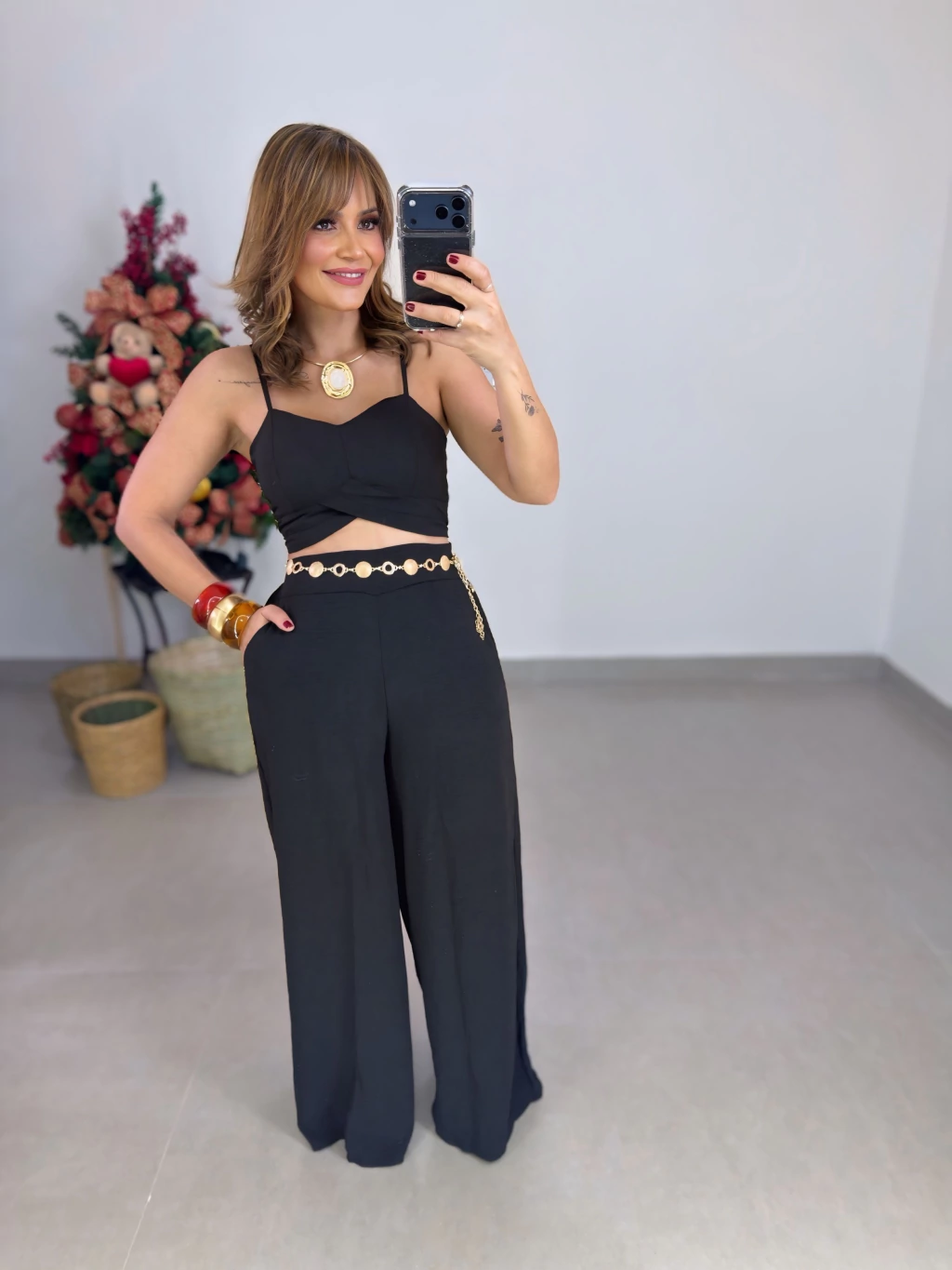 Disponível nos tamanhos que vestem do 36 ao 44, este conjunto valoriza sua silhueta com um caimento impecável e moderno. Ideal para diversas ocasiões, do trabalho ao lazer, garantindo versatilidade no seu guarda-roupa.