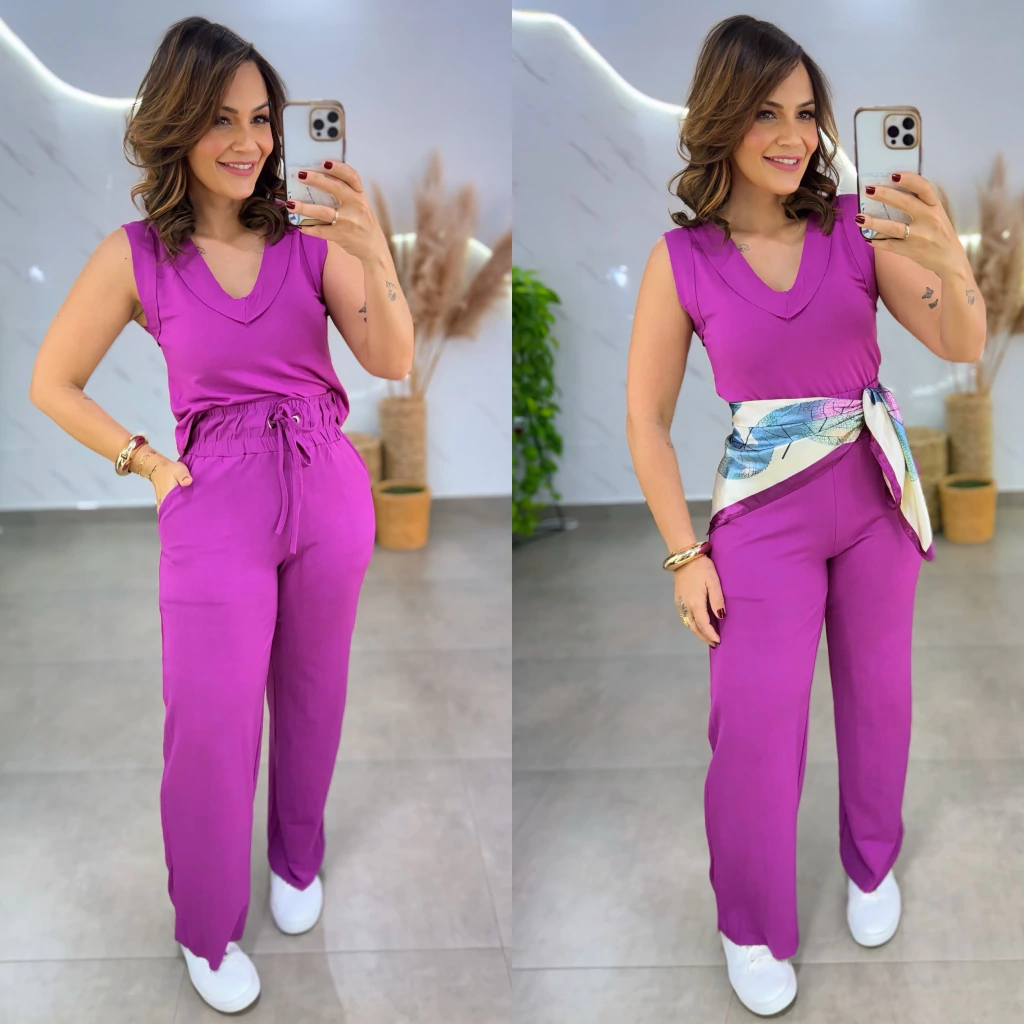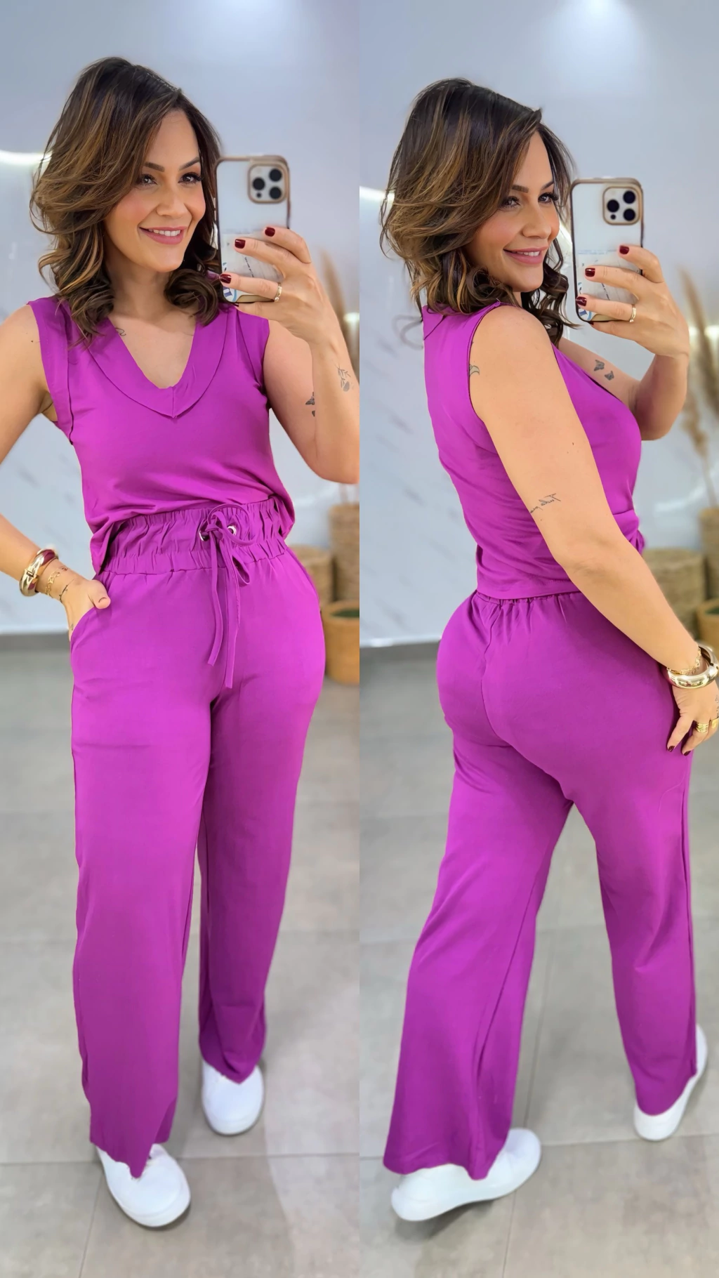 Descubra o equilíbrio perfeito entre conforto e modernidade com este conjunto em moletinho. A calça possui caimento suave e ajuste confortável, enquanto o cropped regata traz um toque casual e versátil para o seu dia a dia.