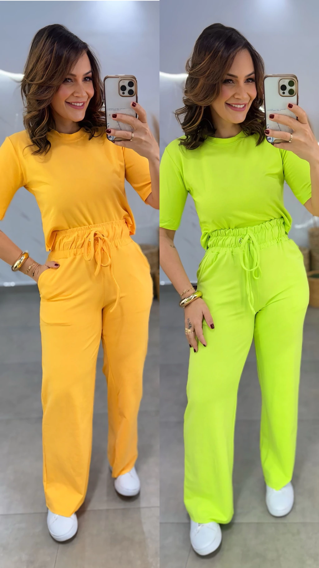 Conjunto Calça com Bolso e Pala Larga + Cropped T-shirt Moletinho Manu – Versatilidade e conforto do 36 ao 44!