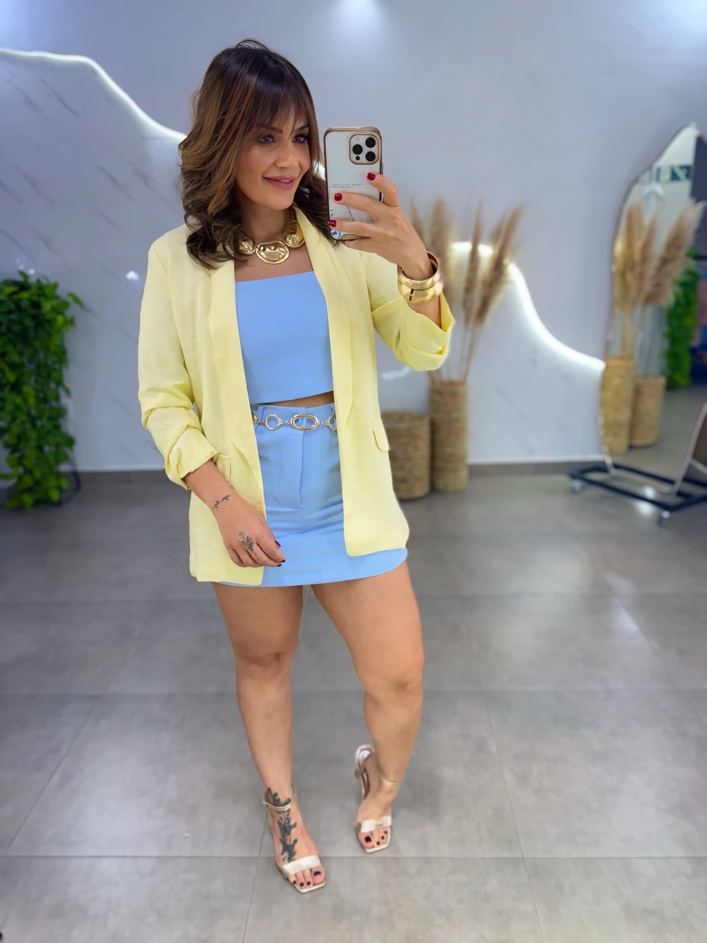Conjunto Cleo Shorts Saia e Cropped Alfaiataria – Sofisticação e Versatilidade para o seu guarda-roupa! Ideal para quem busca elegância com conforto, este conjunto combina shorts saia e cropped em alfaiataria, valorizando a silhueta com caimento perfeito. Disponível nos tamanhos P (36/38), M (38/40) e G (40/42), atende diversas medidas com estilo. Perfeito para ocasiões casuais ou eventos que pedem um look moderno e refinado. Aposte no Conjunto Cleo e destaque-se com praticidade e charme!