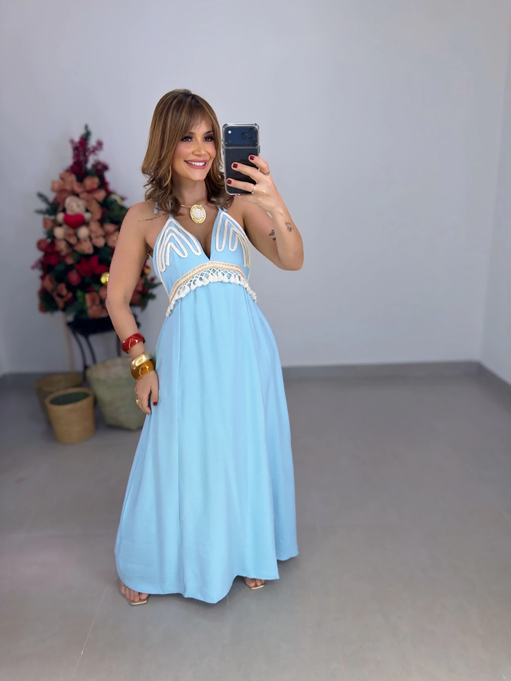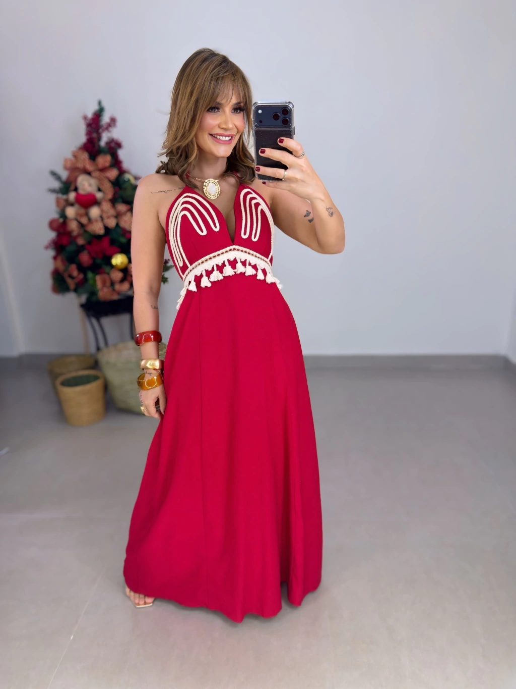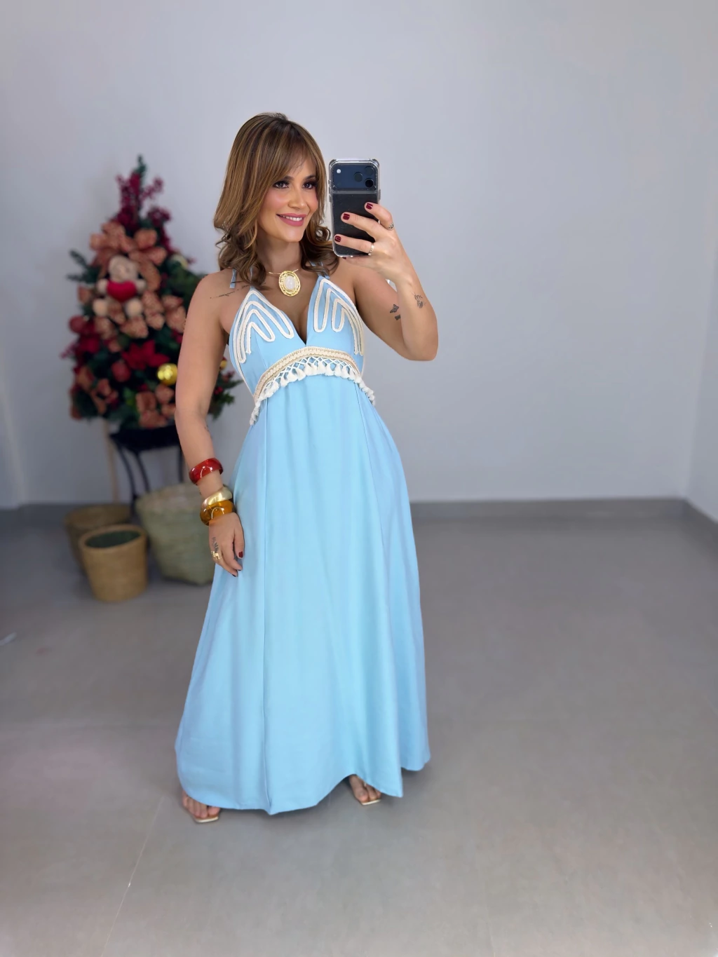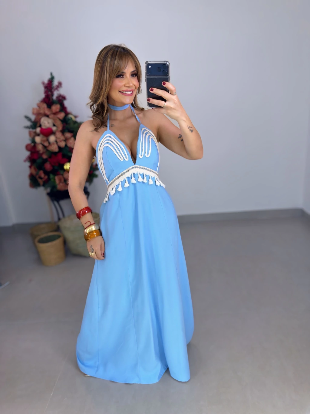Vestido Longo Atena Bordado Corda Marrante – Elegância que Encanta!