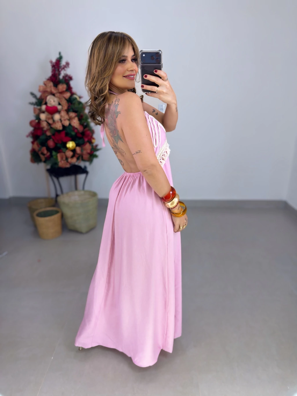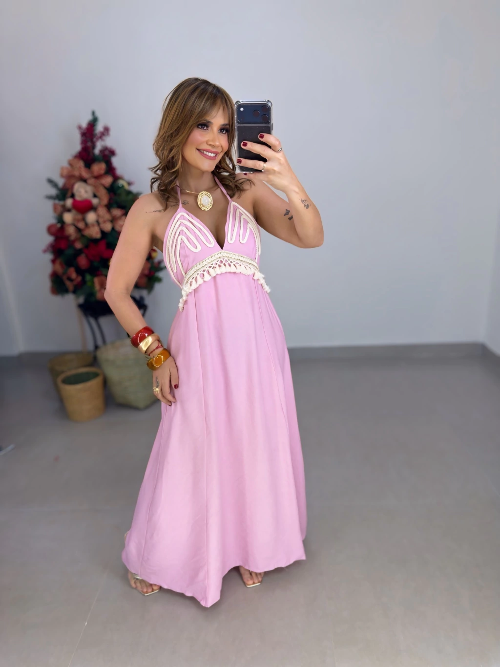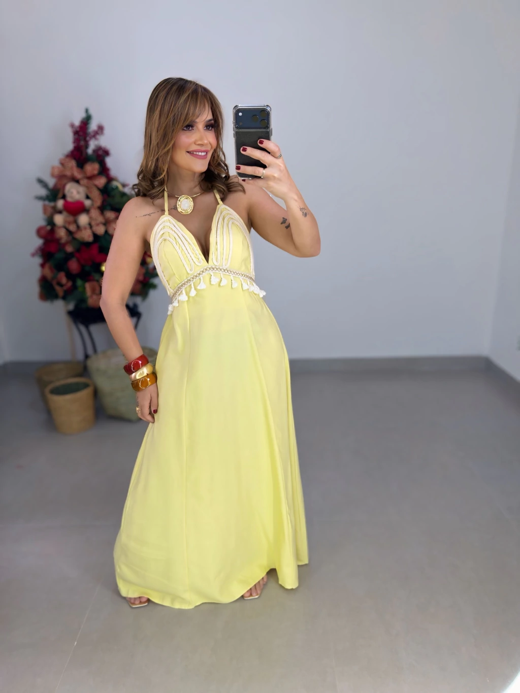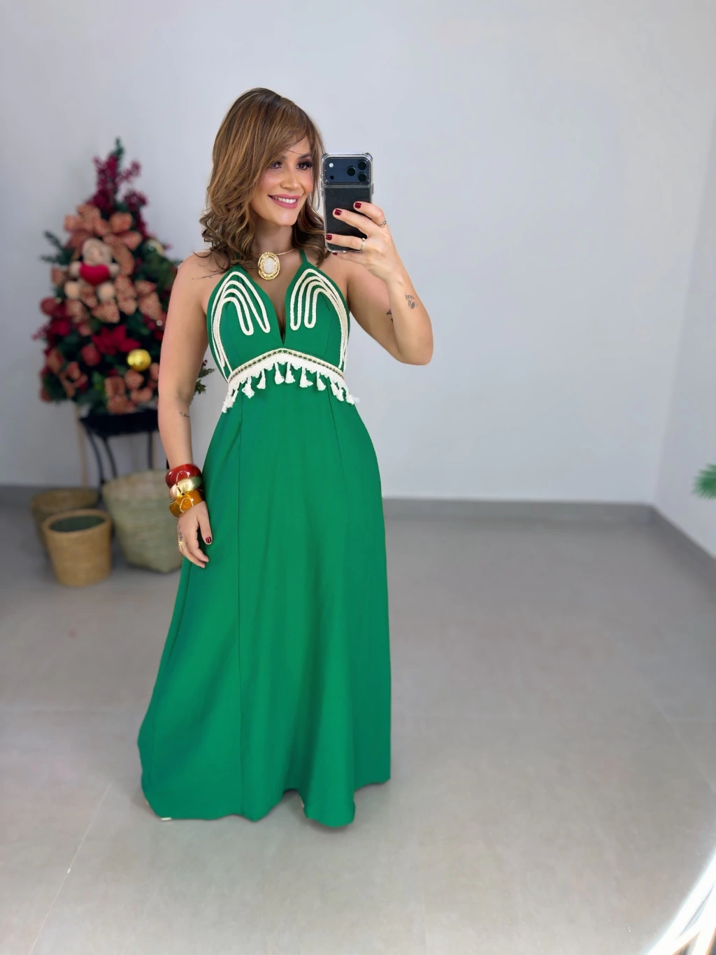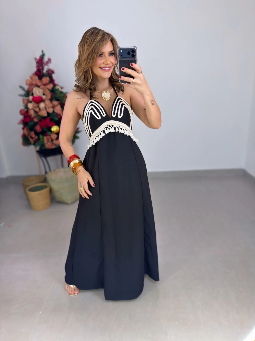 Descubra o charme incomparável do Vestido Longo Atena, com bordados exclusivos em corda marrante que trazem um toque artesanal e sofisticado. Perfeito para quem veste do 36 ao 44, este vestido une conforto e estilo em uma peça versátil para ocasiões especiais.