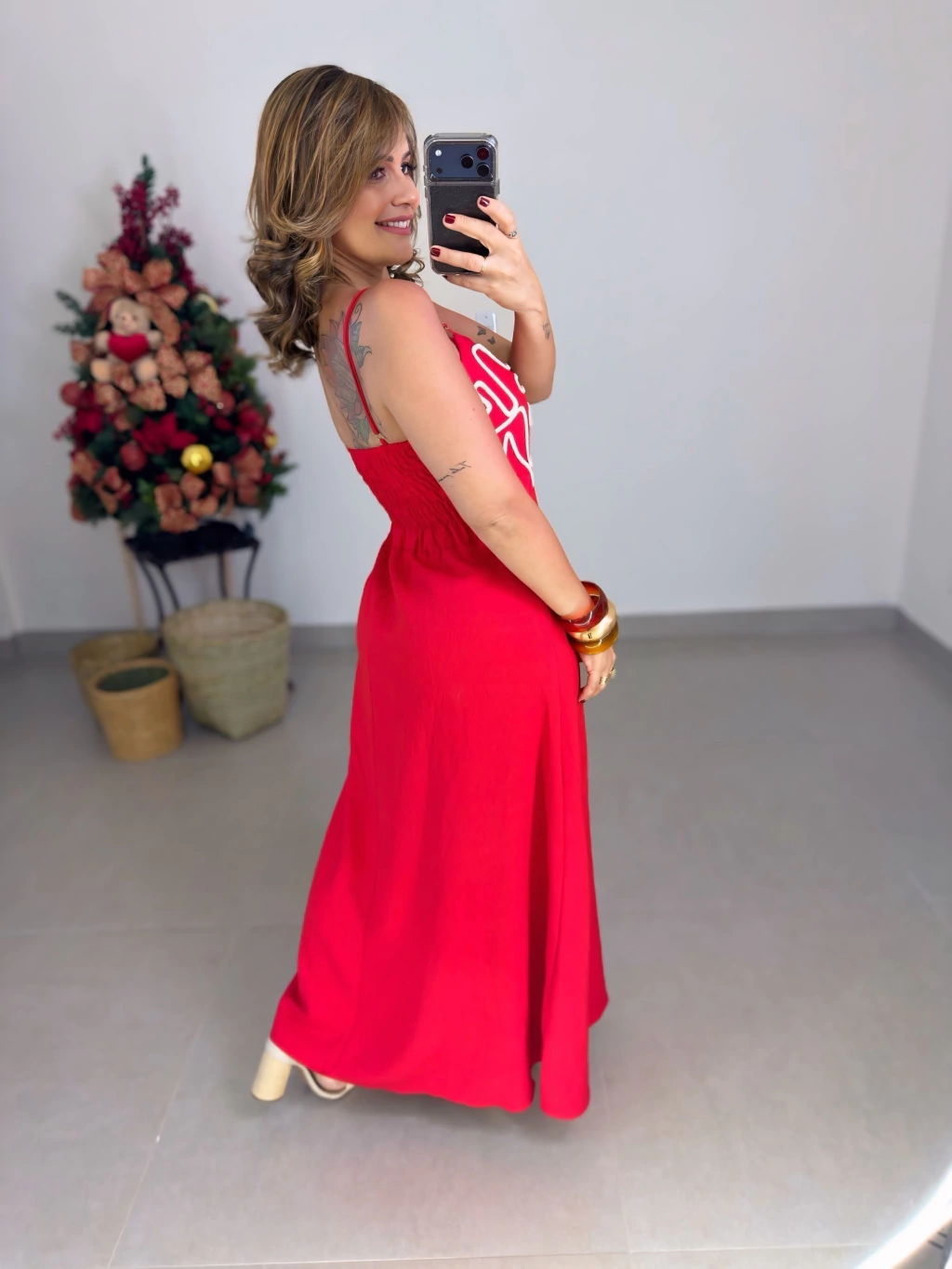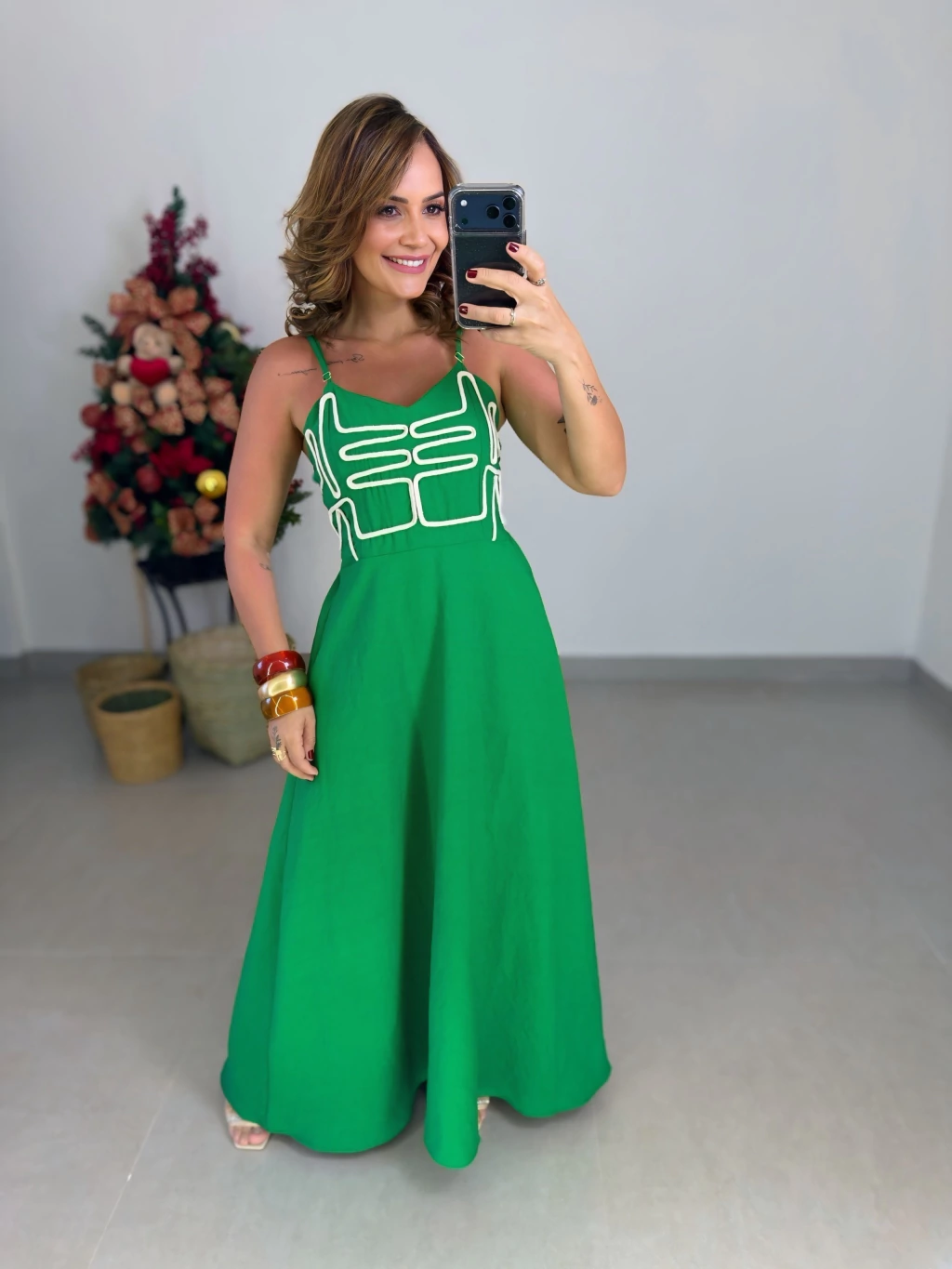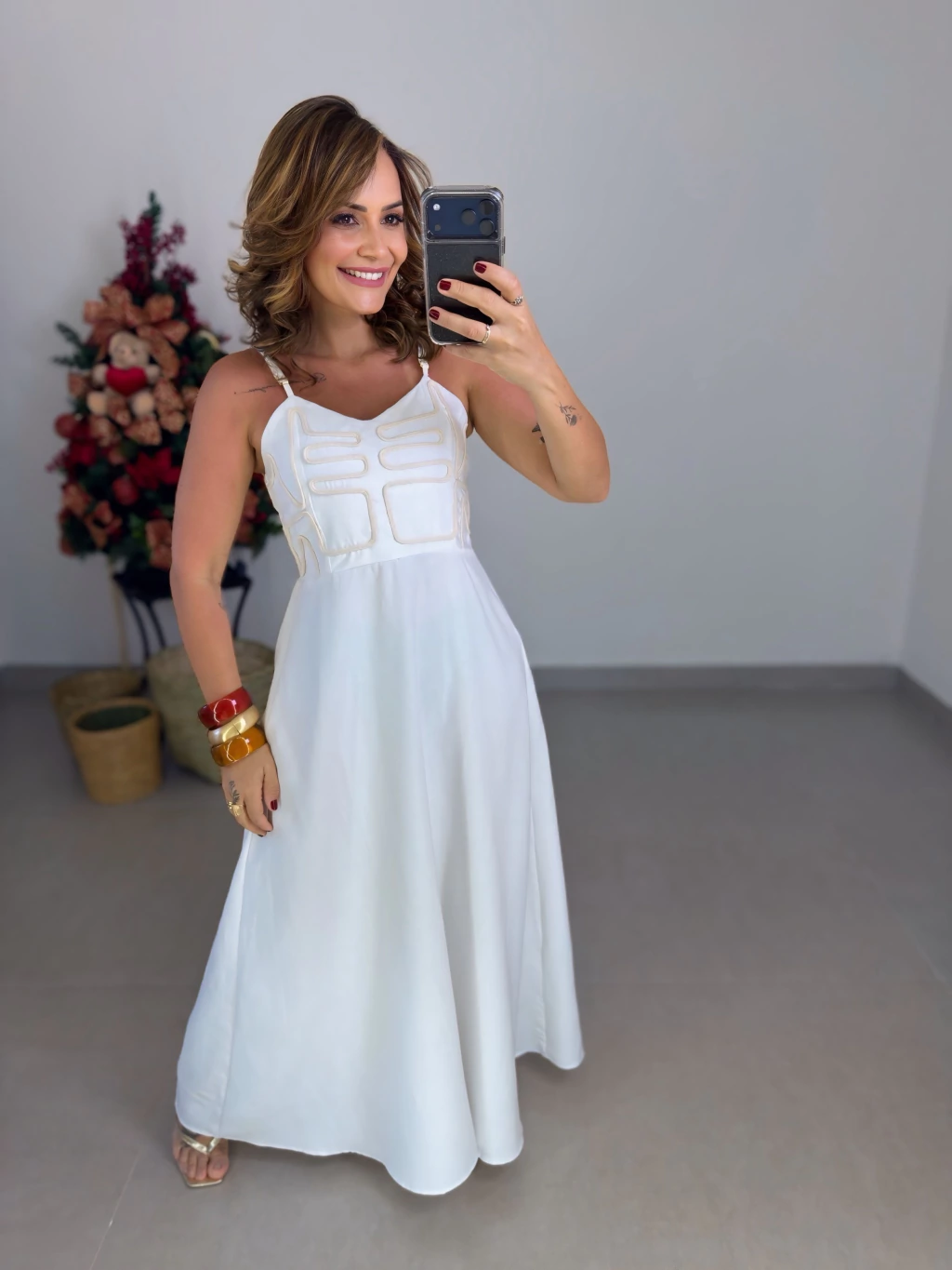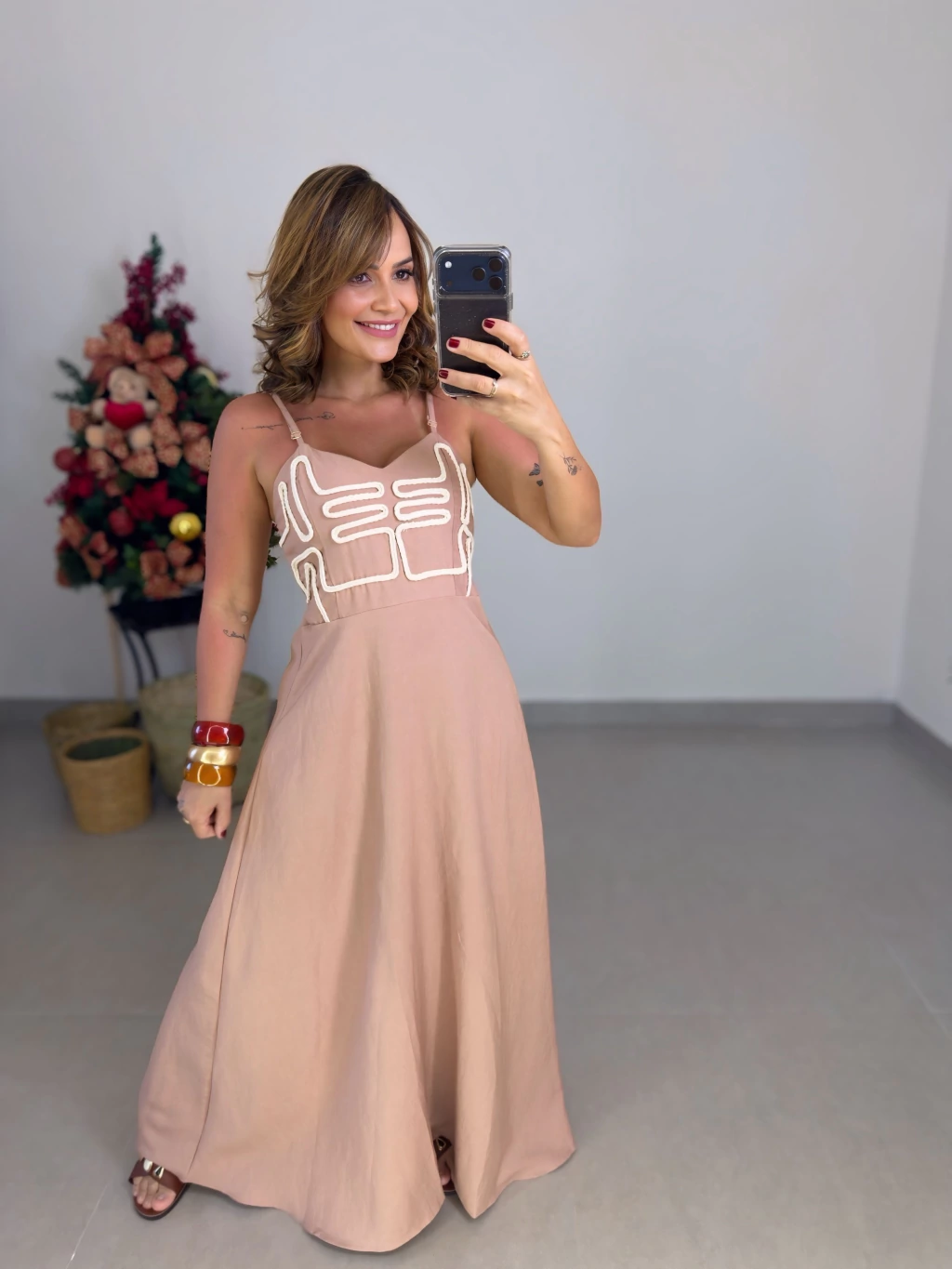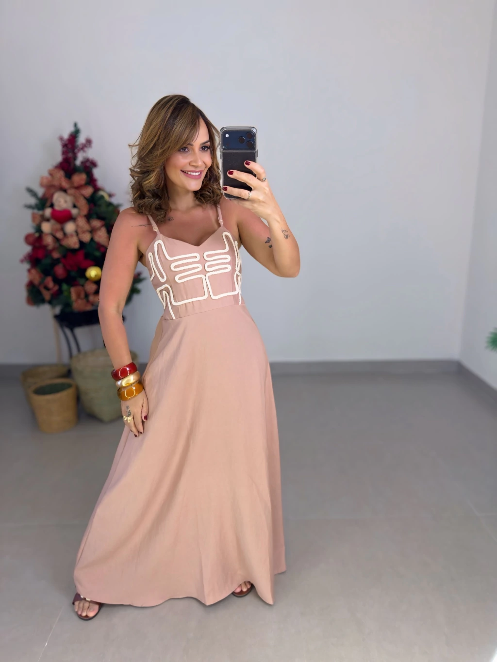 Vestido Longuete Bruna Bordado Barbante Marrante – Elegância que Encanta!