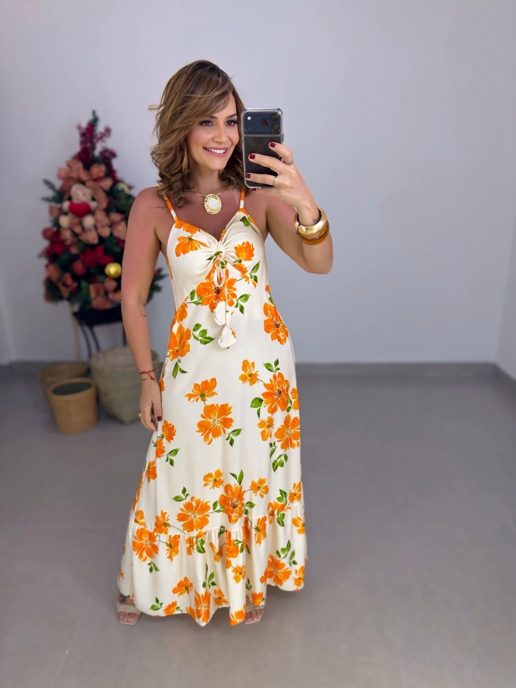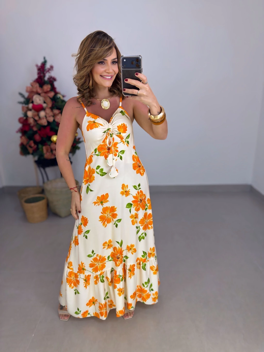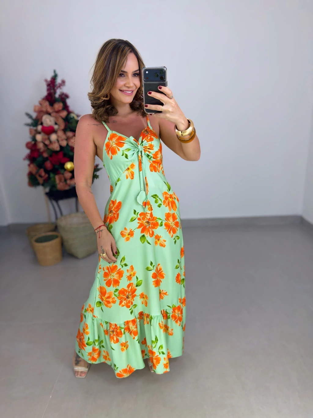 Descubra a sofisticação e o conforto do nosso vestido longuete, confeccionado em viscolinho de alta qualidade, que proporciona um caimento leve e fluido, ideal para dias quentes e ocasiões especiais. O design com amarração no busto valoriza a silhueta, oferecendo um toque delicado e feminino ao seu visual.