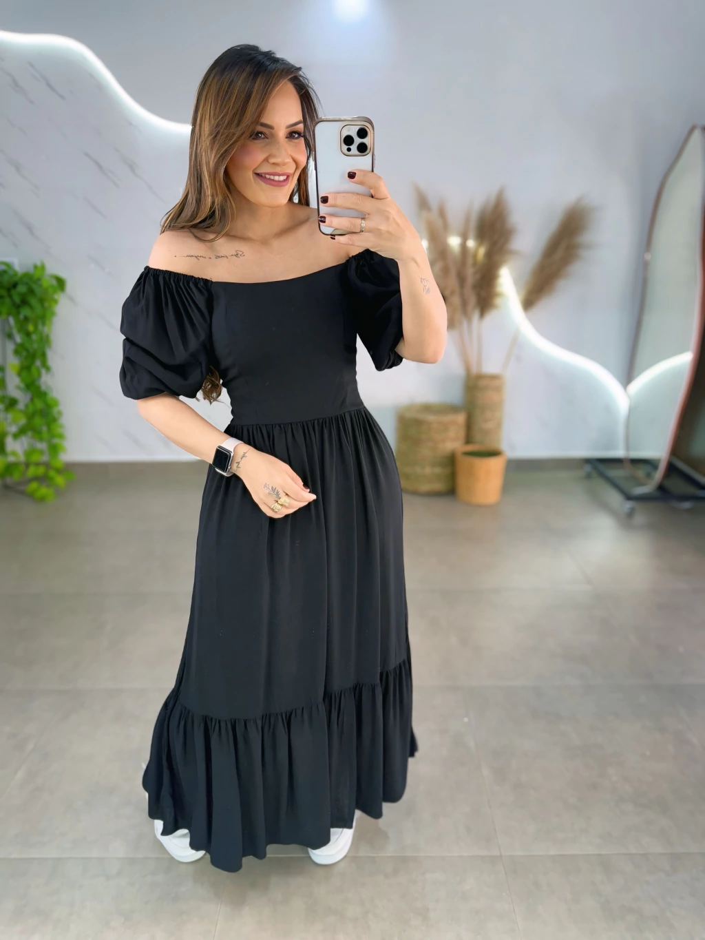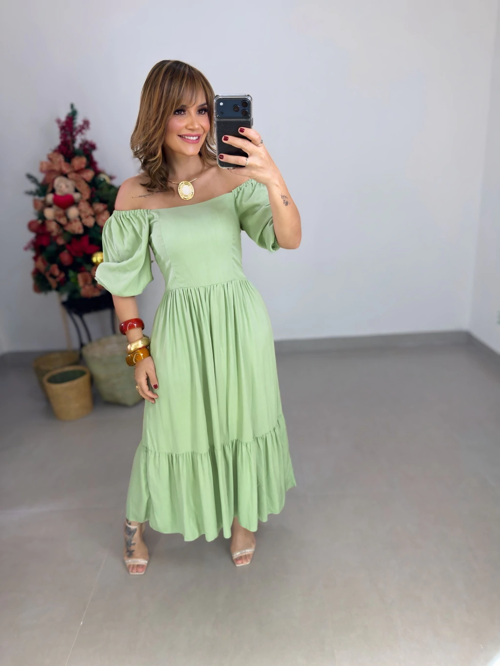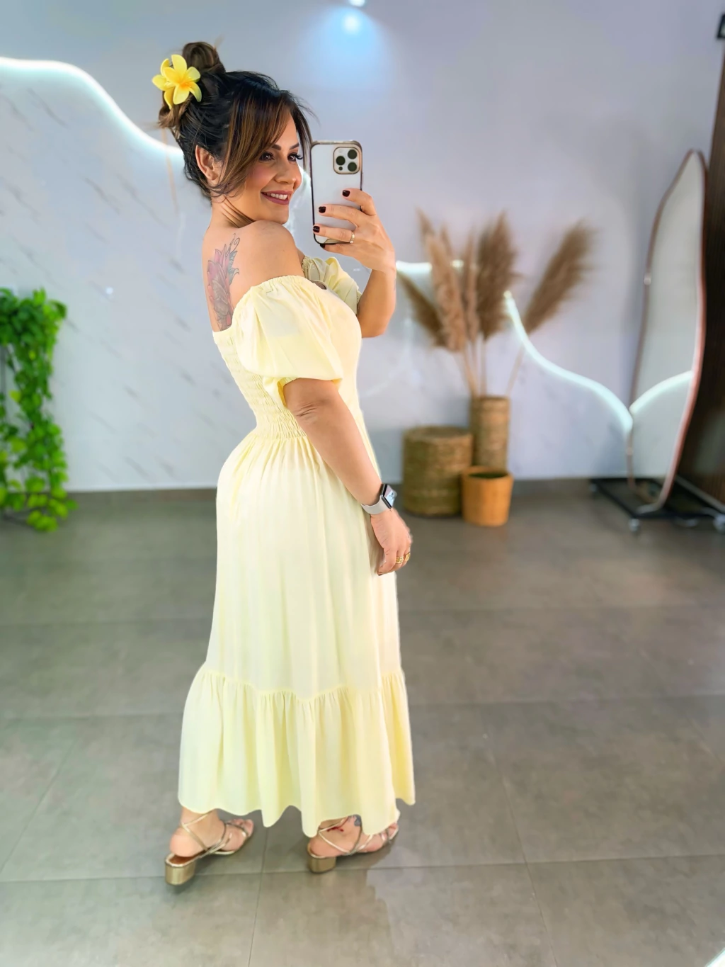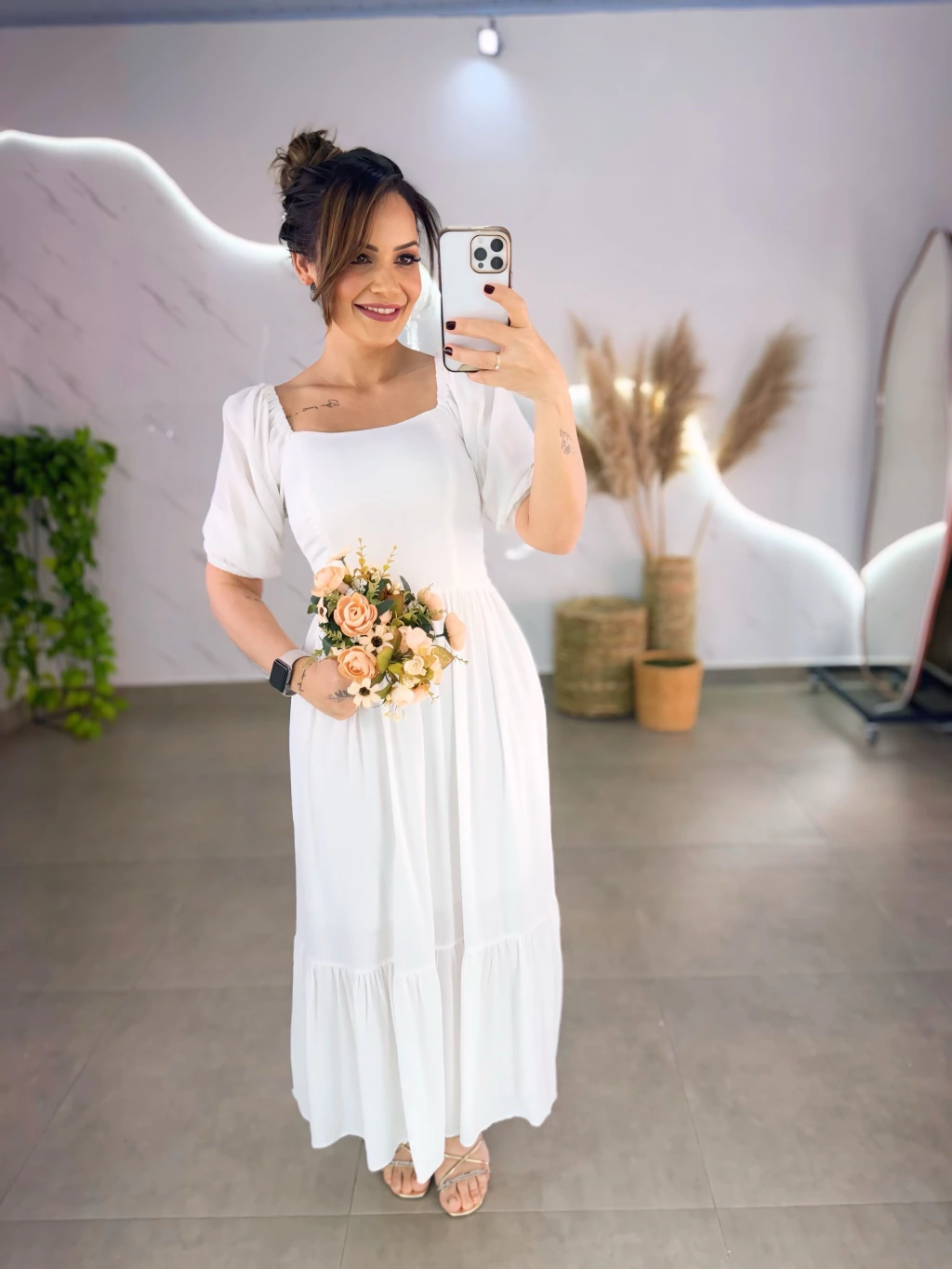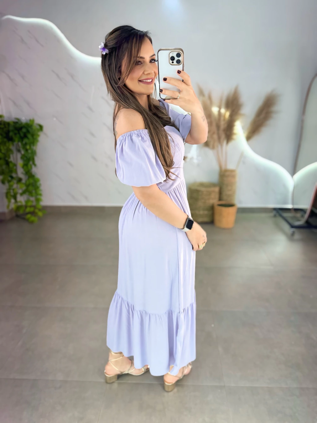 Este vestido mídi em tecido viscolinho forrado é perfeito para quem busca estilo e praticidade. Com manguinhas bufantes delicadas e lastex nas costas, ele veste do 36 ao 44 com ajuste confortável. O diferencial 2 em 1 permite usar ombro a ombro ou tradicional, adaptando-se ao seu mood.