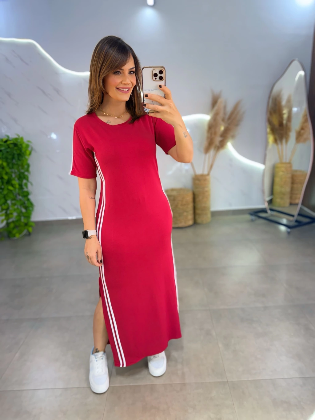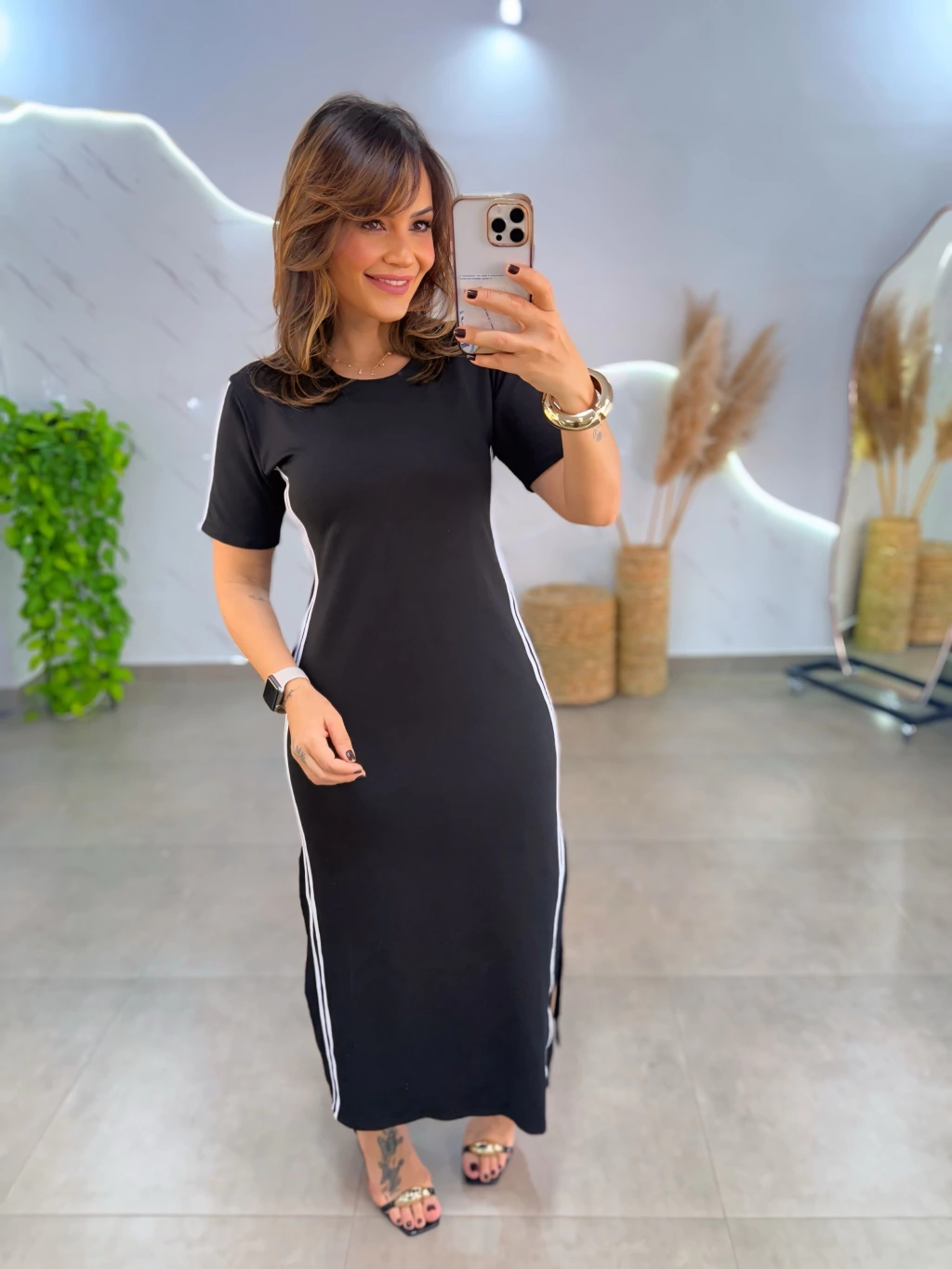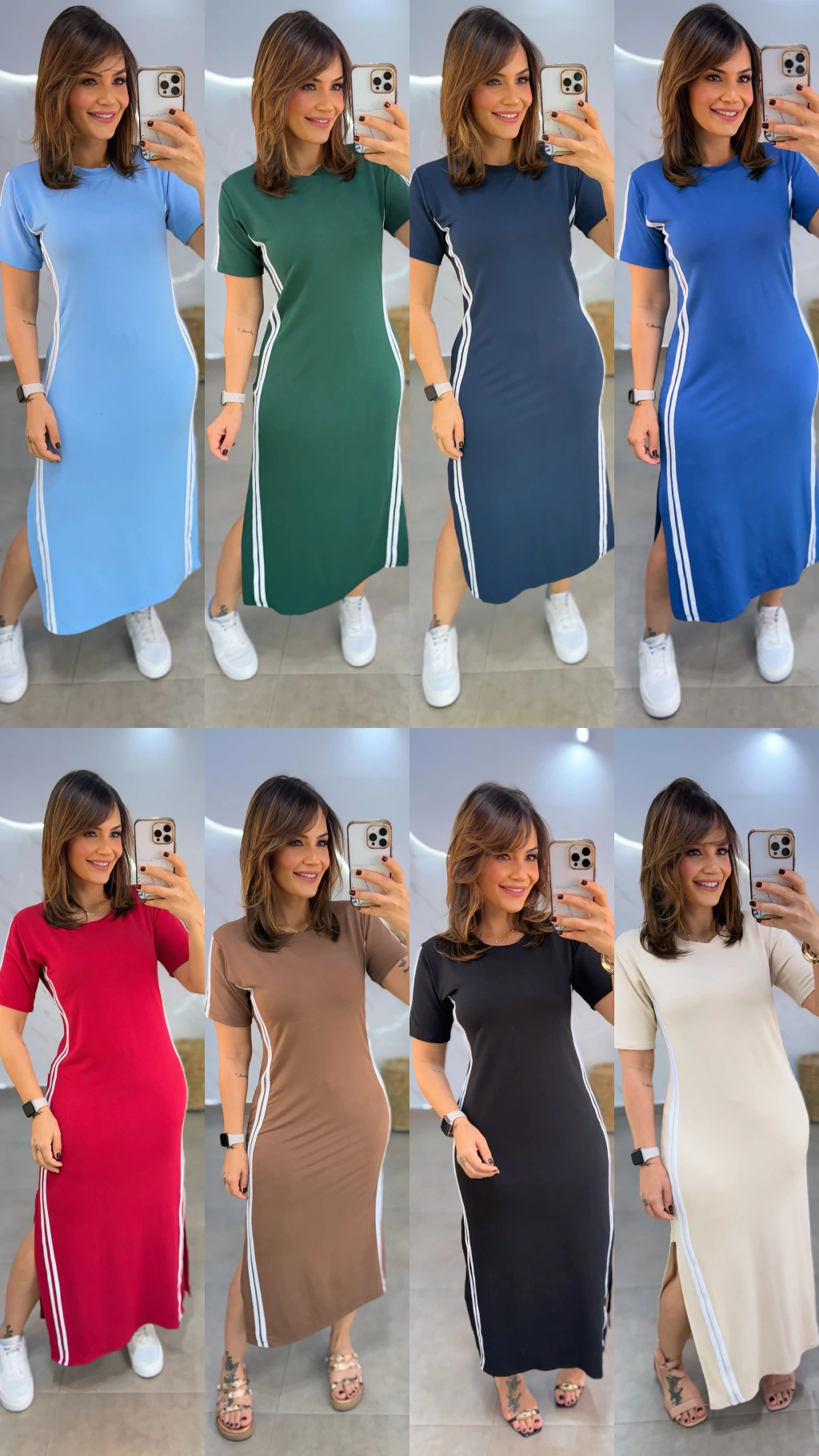 Este vestido midi em tecido moletinho é perfeito para quem busca praticidade aliada ao estilo esportivo. Com mangas curtas (manguinha), oferece conforto e liberdade de movimento para o dia a dia.