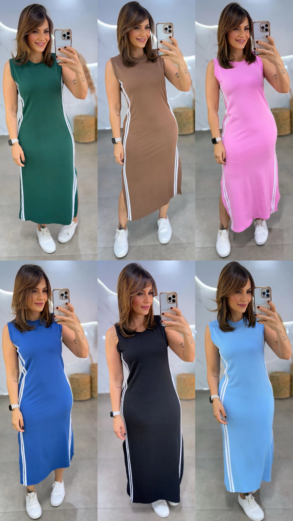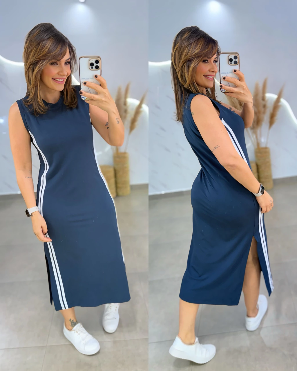 Vestido Midi Moletinho Regata – Inspiração Adidas para Estilo e Conforto