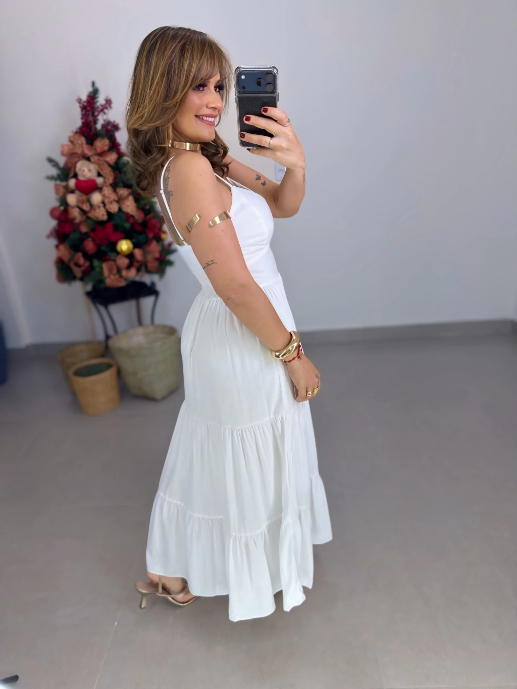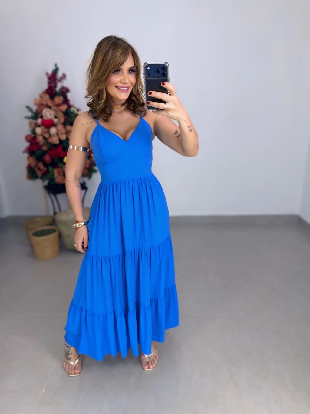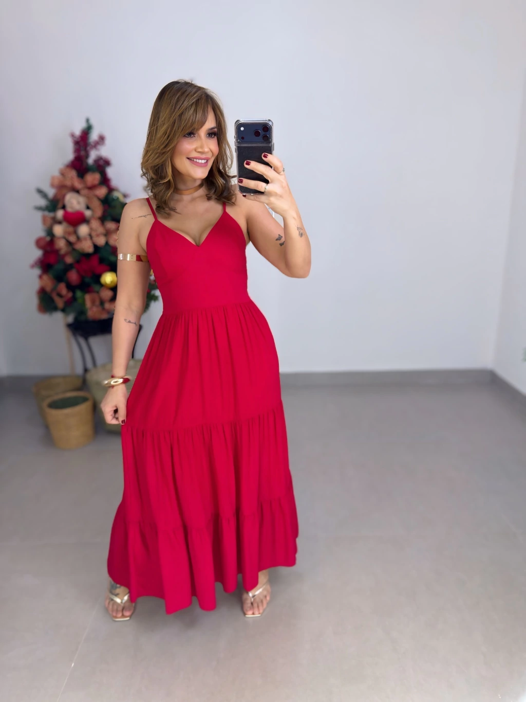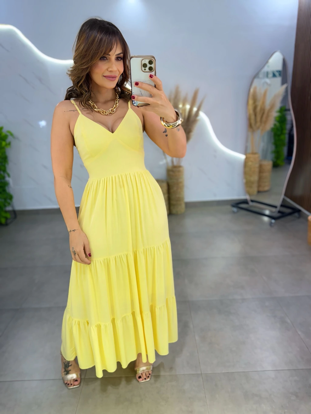 Este vestido midi em viscolinho é perfeito para quem busca leveza e elegância. Com modelagem que veste do 36 ao 44, suas alcinhas proporcionam frescor e versatilidade, ideal para dias quentes.