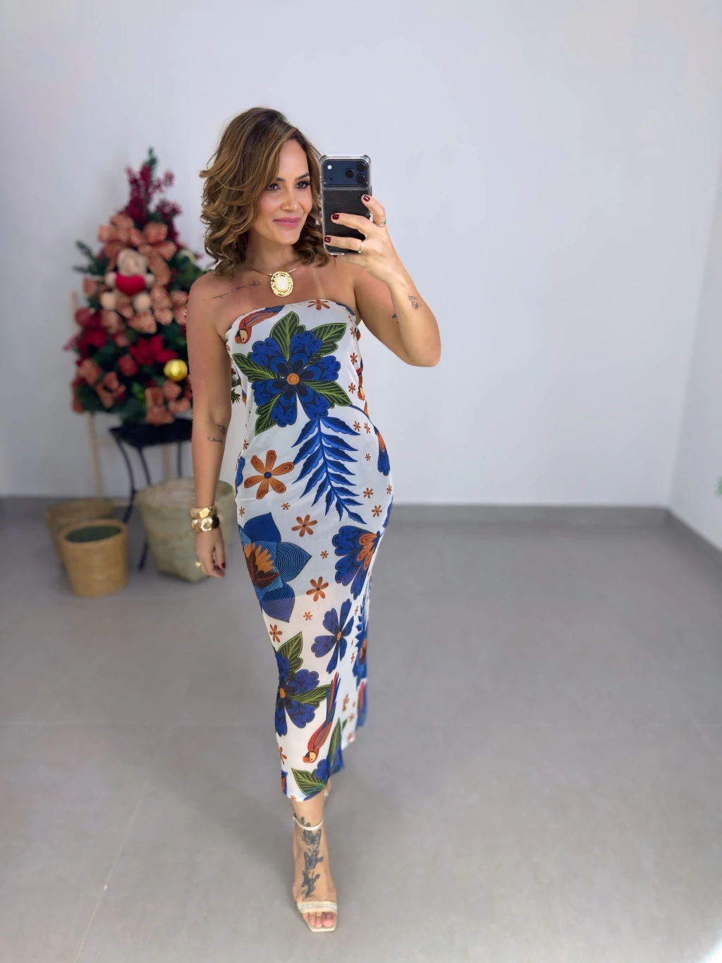 Encante-se com este vestido midi em tule, com design tomara que caia e bojo para melhor sustentação e conforto. Inspirado na delicadeza da Farm, ele traz um toque romântico e moderno para seu guarda-roupa. Perfeito para festas ou ocasiões especiais, seu caimento leve valoriza todos os tipos de corpo.